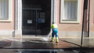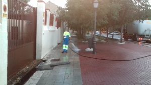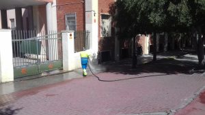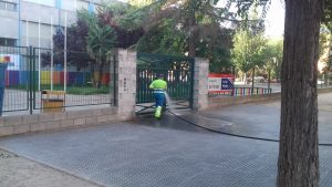 Durante estos días se ha procedido a la limpieza, el lavado y el desinfectado de los accesos y de los contenedores situados en los aledaños de cada uno de los colegios.