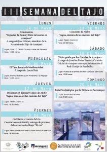 Con una conferencia sobre las especies de fauna y flora invasoras en Aranjuez, que impartirá José Gómez en el Aula 17 del Centro Cultural Isabel de Farnesio, arranca esta tarde la III Semana del Tajo, en la que no faltarán las visitas, las rutas guiadas, las charlas y hasta la presentación de ‘Agua’, el último disco de Aljibe.